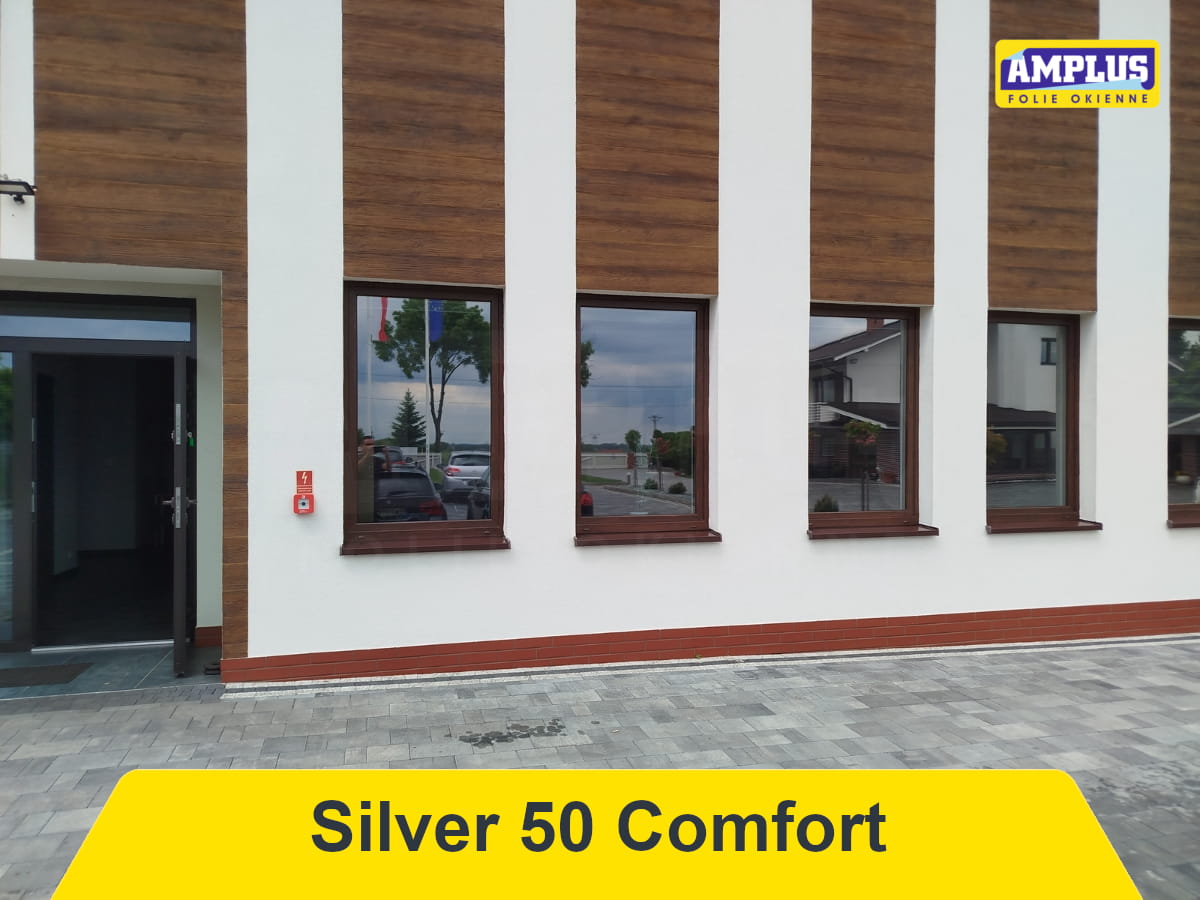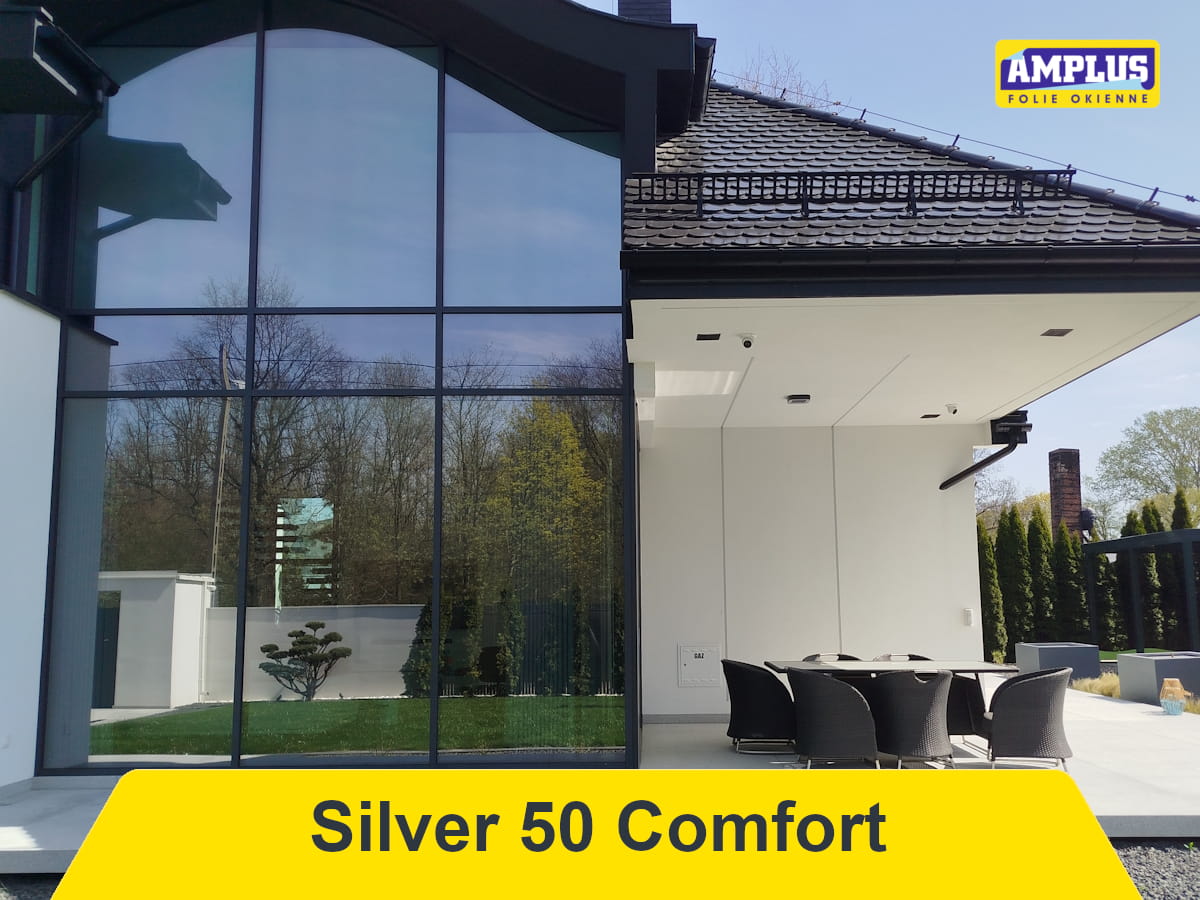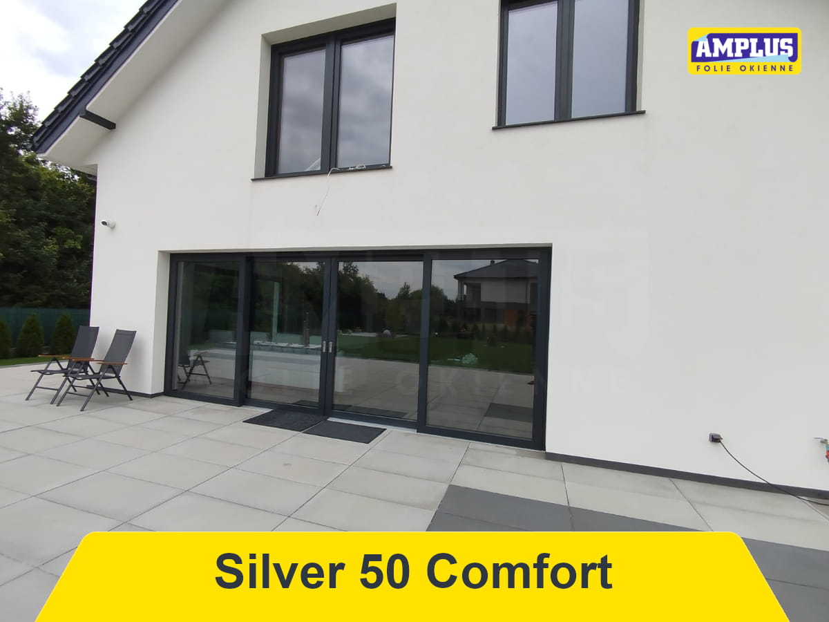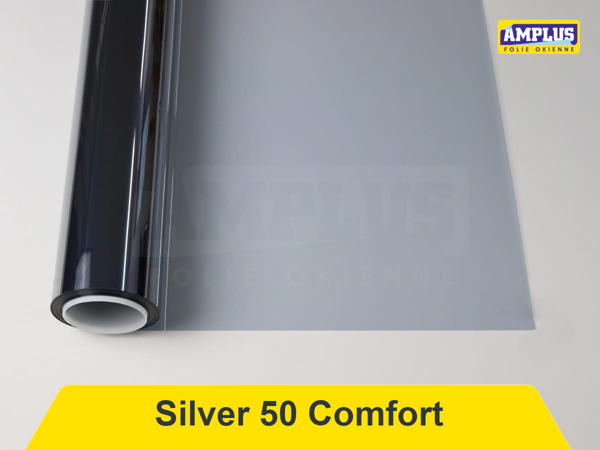 Folia przeciwsłoneczna Silver 50 Comfort - umiarkowana folia przeciwsłoneczna redukuje promieniowanie słoneczne (ciepło) w sposób umiarkowany jednocześnie przepuszczając dużą ilość światła. Folia praktycznie niezauważalna na szybie.